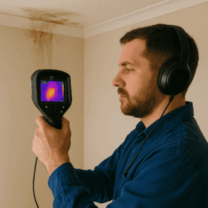 Termal kamera ile su kaçağı tespiti, tesisat hatlarında meydana gelen sızıntıların oluşturduğu ısı farklarını algılayan teknolojik bir yöntemdir. Kaçak olan bölgeler, termal kamera ekranında farklı renkler ile net şekilde görüntülenir. Bu sayede kırma-dökme yapılmadan kaçağın yeri belirlenir.